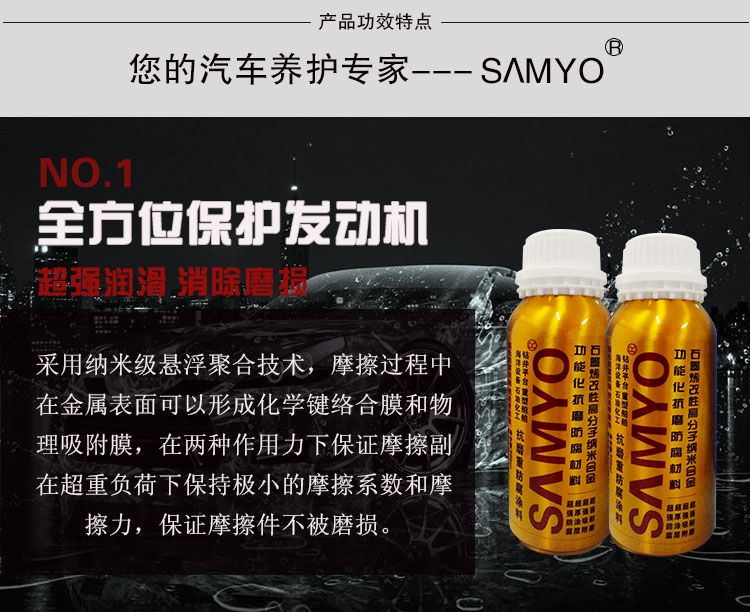 我对您的SAMYO石墨烯汽车发动机保护剂润滑油添加剂抗磨修复剂发动机养护580ml产品感兴趣,请发具体的信息及报价,谢谢!