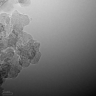 图1 公司批量生产的单分散洋葱状富勒烯材料(左图)和富勒烯放大图(右图)