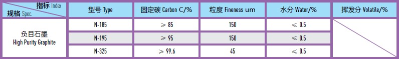 负目石墨是筛下物通过率大于80% 的细粉石墨,一般常用的有-100 目、-200 目。我公司采用天然大鳞片石墨矿石为原料,负目石墨产品能够保持大鳞片的各项优良指标。