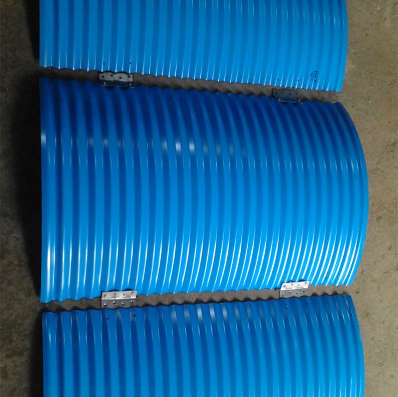 防雨罩的样式: 防雨罩有固定式、开启式和带观察窗口式,可以清楚的看到货物在传送过程中及传送带运行是否正常,更有跑偏罩,为设有跑偏开关的输送机起到防雨、防尘等作用。 防雨罩的颜色主要种类为海蓝、白灰、红色等。 防雨罩的主要程序: 输送机防雨罩的生产需要多个工序完成,包括选板,上料,压型,剪板,压弧,调高,包装等。 防雨罩的安装及注意事项 作为固定输送机罩的骨架为连接角钢或Z型钢,其长度与输送机罩安装长度相等。将连接角钢或Z型钢焊接在输送机架的两侧槽钢或小角钢上。如需安装支撑角钢的,先将支撑角钢焊接在机架两侧,再把连接角钢或Z型钢焊接在支撑角钢上。 四种形式的输送机防雨罩中,固定罩和开闭式罩均由镀锌瓦楞钢板或彩色涂层钢板制成,一般每10个罩位中设9个固定罩、1个开闭式罩,也可两种罩交替排列。安装时,将开闭式罩压在左右两个相邻的固定式罩上,其重合长度为一个波距或两个波距。注意将开闭式罩有铰链的一侧置于输送机非通行边,而将有锁扣的一侧置于输送机通行边。 用自攻钉将防雨罩固定在连接角钢或Z型钢上,每片不少4个固定点。 折点罩仅用于输送机凸弧段的折点处,而跑偏开关罩则专为罩住跑偏开关而设。两种均盖于固定式罩上。 每隔10片也可安装1片观察式防雨罩,方便维修和查看。