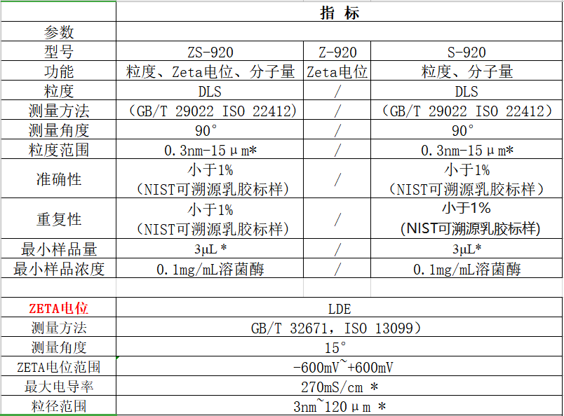 动态光散射纳米粒度及zeta电位分析仪的技术指标