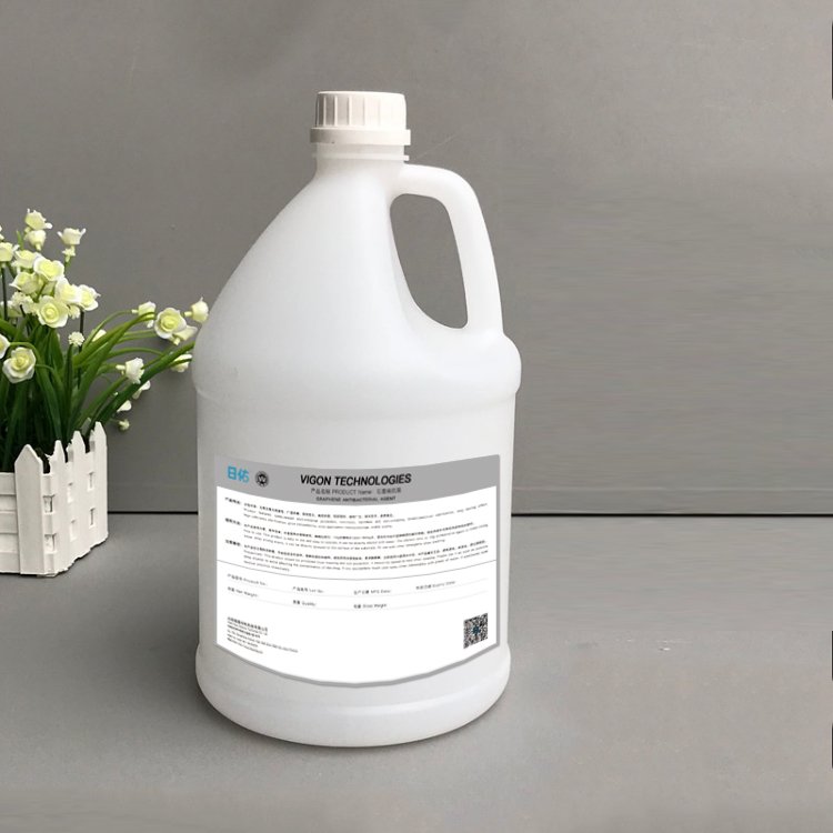 石墨烯抗菌剂为水性纳米无机非离子型抗菌剂,主要成份为改性石墨烯。经过纳米技术处理,克服了一般的有机抗菌剂耐热性差些,容易水解,有效期短的问题。产品不含甲醛、重金属、芳香胺等有害物质,对人体安全无害,符合国家安全检测标准。具有非常高的广谱抗菌性,经WJAB-1抗菌剂处理后的基材,对金黄色葡萄球菌、大肠杆菌、白色念珠菌、绿脓杆菌、真菌等,均具有优异的杀菌和抑菌作用。产品使用简便,易溶于水,耐热性能优异,对基材外观影响小,易吸附在基材表面。可广泛用于纺织品、水性涂料、污水处理、家具表面处理、洗手液、洗衣液等洗护产品中。