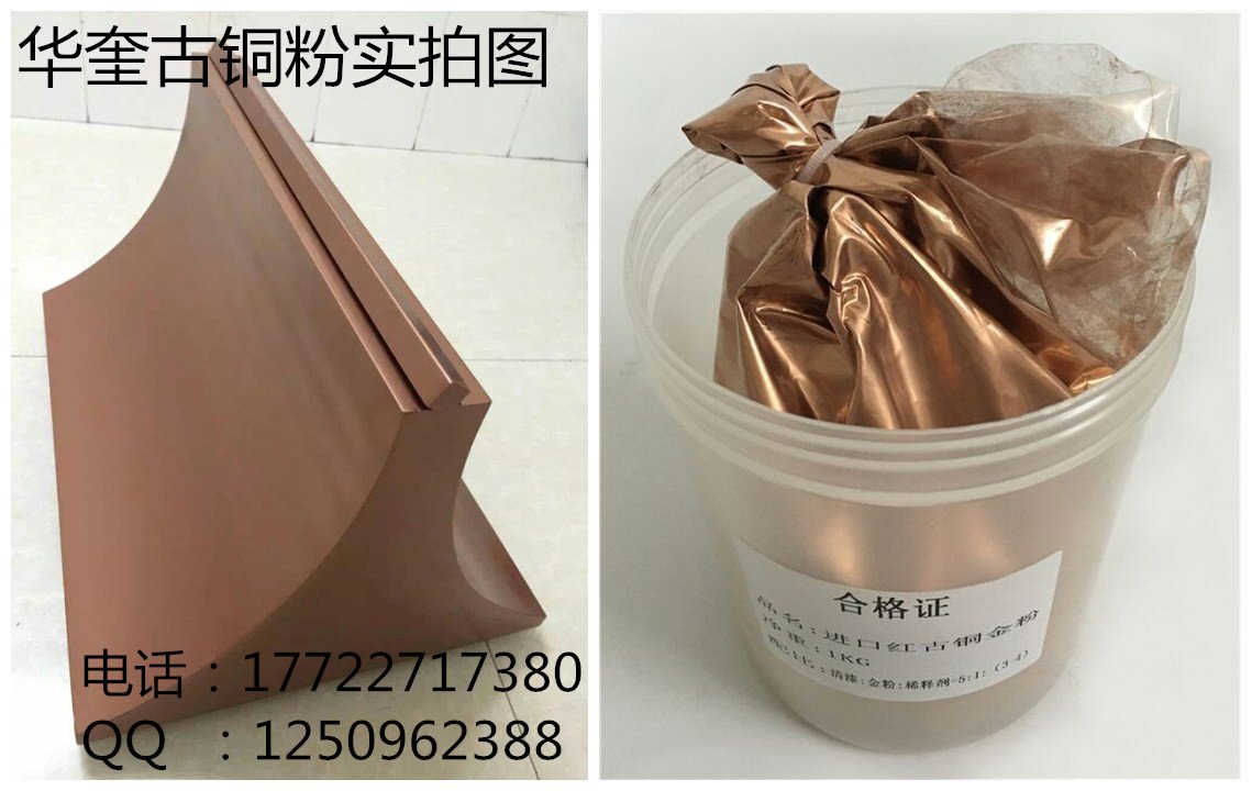 我司供应的古铜又称紫铜粉及仿古铜粉,规格、品类齐全,色泽纯正亮丽,金属感特强。有国产古铜粉,进口古铜粉,德国爱卡古铜粉。