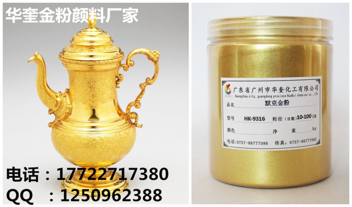 高亮闪的999黄金粉又称金箔粉,做出产品颜色纯正,亮度高,适用于铁艺,工艺品,佛像,雕塑等工程。些效果并非普通珠光粉可比拟。