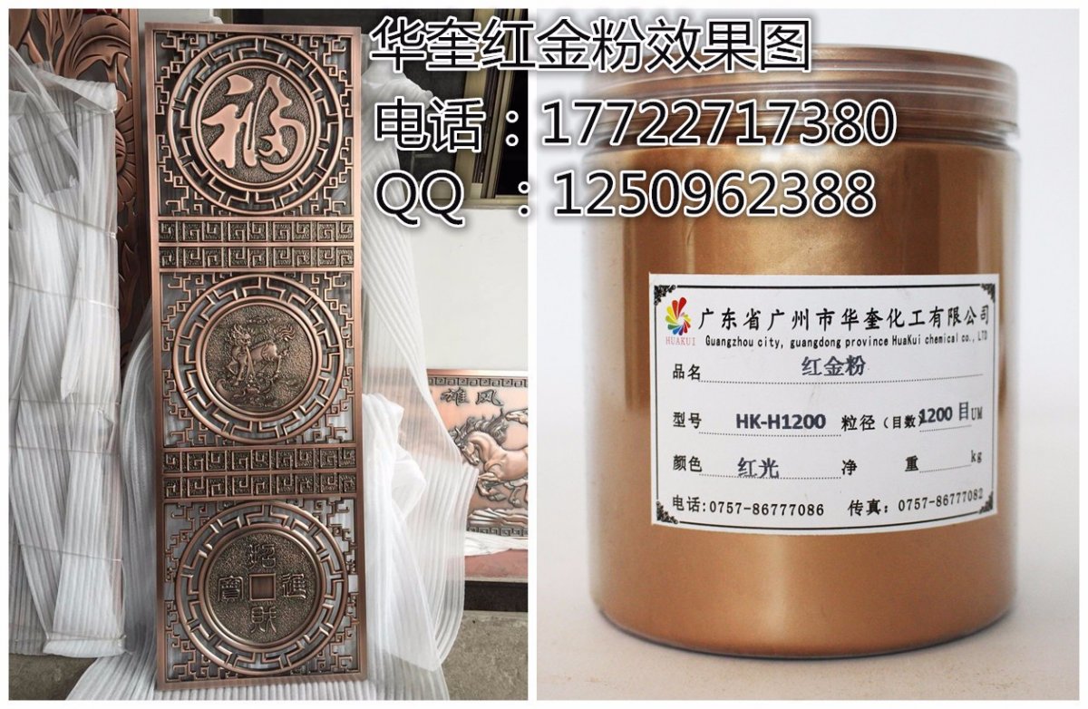 广州华奎铜金属粉是一种浮型片状颜料,由一定比例的铜、锌和铝合金,经熔炼、球磨、分级到所需要的规格和效果而成。铜金粉的色相可分为黄金粉、青金粉、红金粉、紫铜粉、古铜粉等。