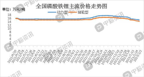 市场概述: 本周,国内磷酸铁锂市场运行态势弱稳下行,目前国内动力型磷酸铁锂市场报价为15万元/吨,环比年前下跌3.85%;储能型磷酸铁锂市场主流出场价在14.2万元/吨左右,环比年前下跌5.33%,价格稳中下滑,近期上游原材料碳酸锂价格有止跌回稳趋势, 在此影响下,磷酸铁锂价格下滑趋势有所放缓。春节期间,部分工厂停工停产,节后陆续复工,企业装置逐渐恢复正常化,市场供应量逐渐增加。下游需求方面,目前市场表现平平,市场处于消费淡季,新订单在商谈阶段,下游电池厂商持观望心态,暂无备货打算,预计下游需求恢复还需一定时间。(所有数据截至2月2日)
