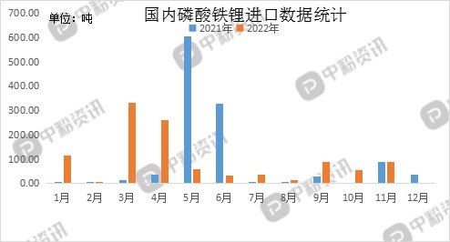 进出口方面:海关统计,2022年12月我国磷酸铁锂当月进口量为0.006吨,累计进口量为1095.41吨,进口量环比下跌99.99%,进口量同比下跌99.98%,累计进口量比去年同期下跌6.51%。