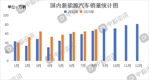 下游市场概况:当前终端新能源市场发展稳步向好,各地区促消费活动陆续展开,商务部推动各地开展“千县万镇”新能源汽车消费季活动,叠加部分地区开展发消费券等辅助措施,进一步提振了新能源汽车消费热情。据乘联会数据了解,8月1-31日,新能源车市场零售69.8万辆,同比增长32%,环比增长9%;今年以来累计零售442.4万辆,同比增长36%;8月1-31日,全国乘用车厂商新能源批发80.5万辆,同比增长28%,环比增长9%;今年以来累计批发508.6万辆,同比增长39%。