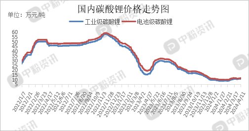 上游市场行情:本周上游碳酸锂市场维持稳中上行趋势,价格小幅回升,截至目前,国内工业级碳酸锂主流出厂报价为11万元/吨,电池级碳酸锂主流成交报价在11.61万元/吨左右。原料锂矿端,随着下游预期及排产持续向好,市场对于高价锂矿石接受度提高,整体看锂矿价格后续有持续上行的可能性,支撑锂盐价格。下游需求面来看,下游企业依旧维持观望,刚需采买为主,需求提量不算明显,因此预计短期内锂盐价格稳步小幅上涨为主。(所有数据截至4月11日)