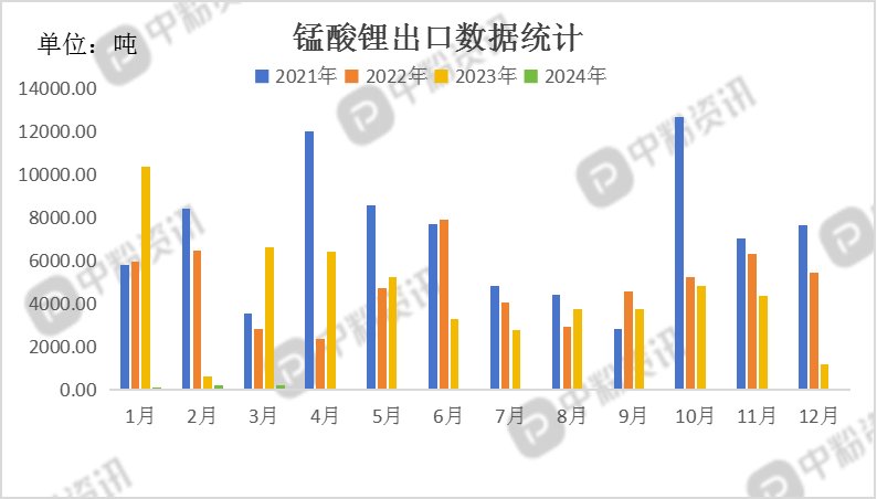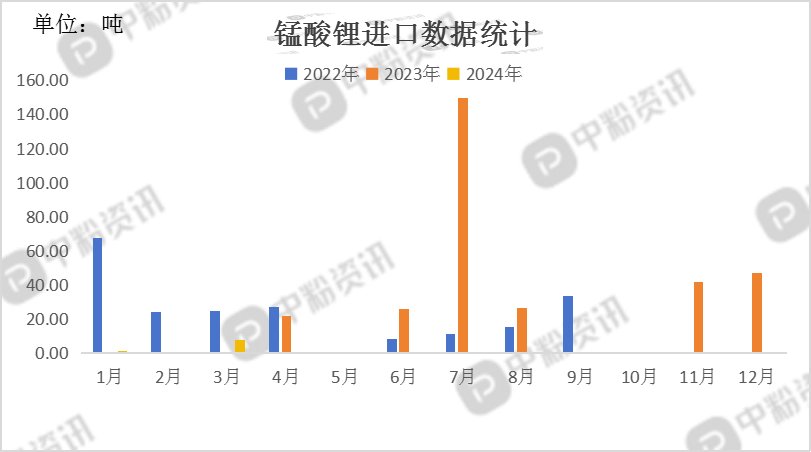 海关统计,2024年3月我国锰酸锂当月进口量为7.80吨,累计进口量为7.80吨。