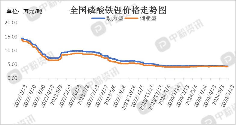市场概述:本周,正极材料市场持续走弱,观望情绪较浓。截至目前,国内动力型磷酸铁锂市场主流报价为4.25万元/吨,环比上周下调0.23%;储能型磷酸铁锂主流成交价在4.11万元/吨,环比上周下调0.24%;动力型锰酸锂市场主流成交价在4.65万元/吨,容量型锰酸锂市场主流报价在4.25万元/吨,环比上周暂无明显变化。正极材料市场部分企业并未完全恢复到正常开工状态,市场整体开工率水平处于中低位,市场整体交投氛围清淡,订单多集中在大型企业,企业平稳生产为主。目前,上游原料端碳酸锂价格小幅下跌,碳酸锂市场供给宽松,未来仍有过剩,预期碳酸锂现货价格仍存在下跌空间,预计后期正极材料价格以跟跌碳酸锂为主。(所有数据截至5月23日)