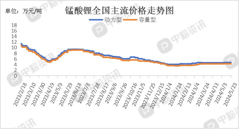 上游市场行情:近期碳酸锂价格多震荡运行,价格上下浮动较小,许多企业对这一转变化感到忧虑,并对市场前景持保守乃至消极态度。截至目前,工业级碳酸锂主流出厂报价在10.22万元/吨左右;电池级碳酸锂主流出厂报价在10.65万元/吨左右。(所有数据截至5月23日)