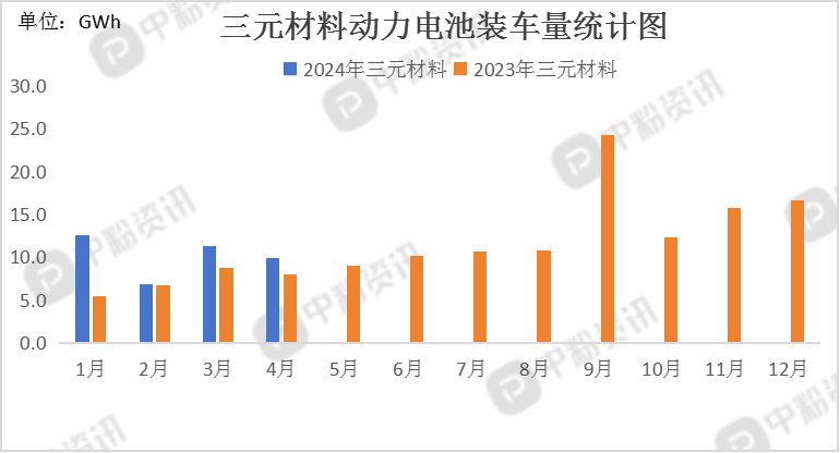下游市场行情:据创新联盟了解,4月,我国动力电池装车量35.4GWh,同比增长40.9%,环比增长1.4%。其中三元电池装车量9.9GWh,占总装车量28.0%,同比增长24.1%,环比下降12.2%;磷酸铁锂电池装车量25.5GWh,占总装车量71.9%,同比增长48.7%,环比增长7.8%。1-4月,我国动力电池累计装车量120.6GWh, 累计同比增长32.6%。其中三元电池累计装车量40.8GWh,占总装车量33.8%,累计同比增长41.2%;磷酸铁锂电池累计装车量79.8GWh,占总装车量66.1%,累计同比增长28.6%。