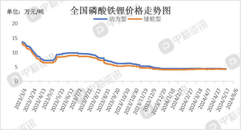 下游市场分析: 随着国家“以旧换新”的政策落地实施、各地相应政策措施出台与跟进,加之车市新品价格战阶段性降温,市场观望群体消费热情被激发,5月全国新能源乘用车市场进入相对较好的发展阶段。据乘联会了解,5月1-31日,新能源车市场零售79万辆,同比增长36%,环比增长17%,今年以来累计零售324.2万辆,同比增长34%;5月1-31日,全国乘用车厂商新能源批发90.3万辆,同比增长33%,环比增长15%,今年以来累计批发364.3万辆,同比增长31%。预计后期终端新能源市场持稳运行。