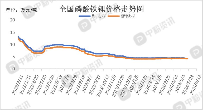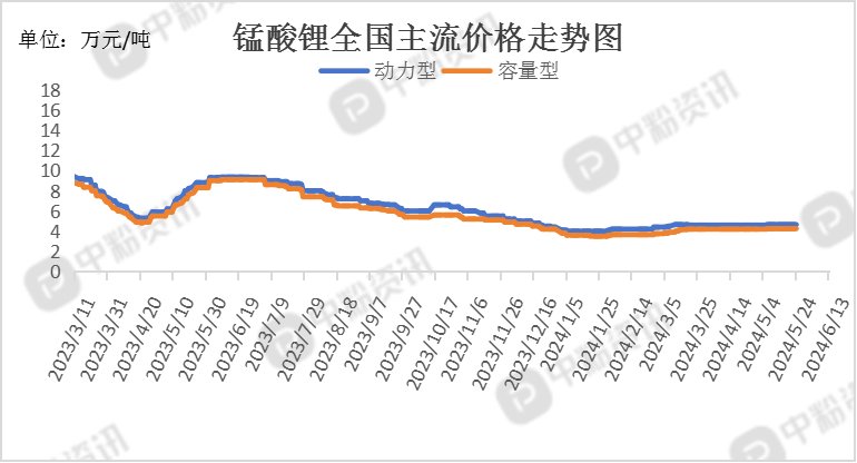 市场概述:本周,正极材料产品价格延续下跌趋势,市场运行态势偏弱。截至目前,国内动力型磷酸铁锂市场主流报价为4.15万元/吨,环比上周下调0.95%;储能型磷酸铁锂主流成交价在4.01万元/吨,环比上周下调0.99%;动力型锰酸锂市场主流成交价在4.20万元/吨,环比上周下调0.97%;容量型锰酸锂市场主流报价在3.80万元/吨,环比上周下调10.59%。上游原料端碳酸锂价格持续走跌,正极材料成本面支撑不足,正极材料价格或将跟跌原料市场为主,从订单方面来看,终端新能源市场新增订单不多,下游电芯企业仍以清除库存为主,刚需采购,企业观望情绪加重。预计短期内正极材料市场走势偏弱下行可能性较大。(所有数据截至6月13日)