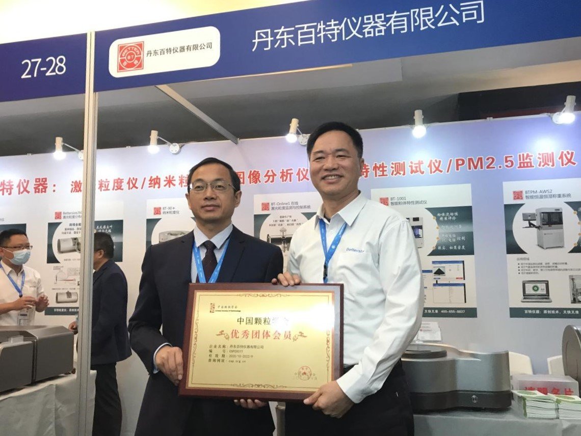 多年来,丹东百特仪器有限公司积极支持和参与中国颗粒学会的各项学术活动,中国颗粒学会也为丹东百特的发展提供了宝贵的指导和帮助,双方的合作互利共赢,促进了中国颗粒学的发展。为表彰丹东百特仪器有限公司为中国颗粒学会发展所做出的贡献,中国颗粒学会理事长朱庆山研究员向丹东百特颁发了“优秀团体会员”奖牌。