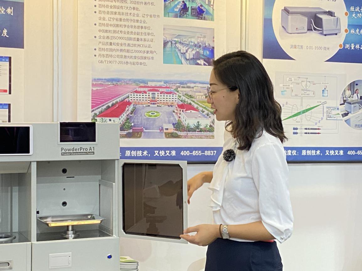 展会首日,丹东百特国际部经理董莞莹女士接受仪器信息网采访,介绍了百特为塑料橡胶行业带来的专业解决方案,以及如何解决粉体原材料粒径监测痛点等问题。本次百特展团带来了激光粒度仪Bettersize2600与智能粉体特性测试仪BT-1001等王牌产品。Bettersize2600是一种高性能激光粒度仪,采用国内外首创的正反傅里叶光路技术,配合倾斜样品池设计,实现了全角度散射光接收,保证了测量范围,提升了测量精度。BT-1001智能粉体特性测试仪是通过图像法自动拍摄休止角、崩溃角或平板角,自动识别角度,减少人为误差,操作简便,准确性好。同时,BT-1001采用国内外首创的移动端和 PC端两种控制平台,给用户更多的选择和最好的体验。