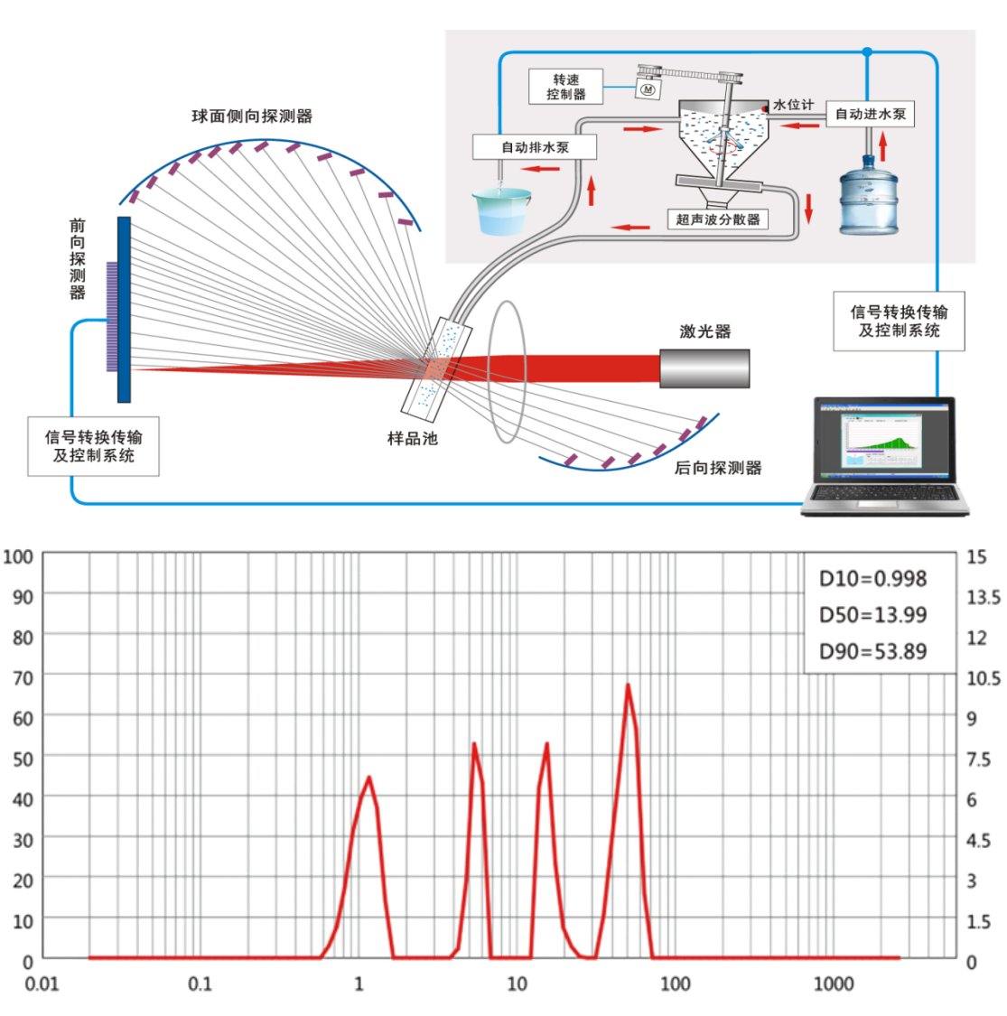 丹东百特仪器有限公司总经理董青云在大会上做精彩报告,题目为“激光粒度测试原理与百特激光粒度仪独特光学系统”。董总从激光粒度测试原理出发,通过动画的形式将激光粒度仪的光路系统展现的非常形象,例举粗、中、细三种不同粒径分布的样品在测试过程中在产生的信号差异,展示了百特独特的光学系统,使与会者对激光粒度测试原理有了进一步了解。董总的报告形象生动受到与会者高度赞誉。