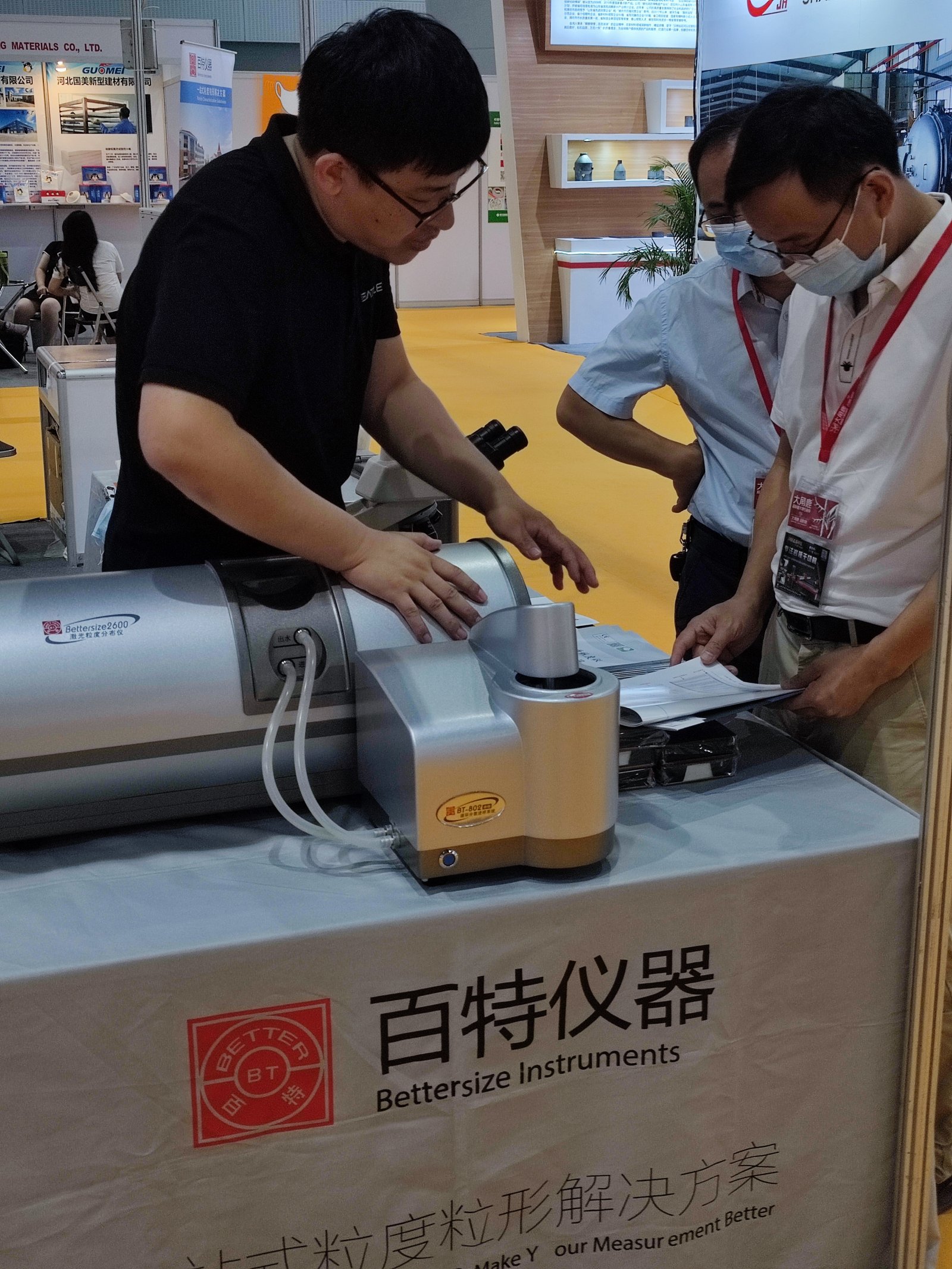 丹东百特此次参展现场展示的Bettersize2600激光粒度分布仪、BT-1001智能粉体特性测试仪、BT-1600图像颗粒分析仪可准确快速地测量陶瓷粉体中的颗粒数量及形貌,为陶瓷行业企业提供粒度、粒形、物性指标等一站式解决方案,由此吸引了众多观众前来展位交流洽谈。