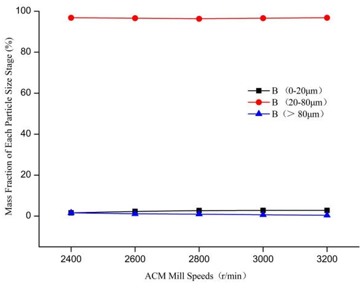 填料和树脂熔融混合之后,下一道工序是粉碎和分级。粉末涂料的粒径受到磨机、进料速度、气流条件和分级等影响。图5显示了不同的粉碎分级工艺(A和B)对产品粒度分布的影响。