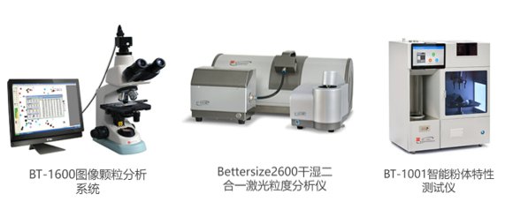 BT-1600图像颗粒分析系统能够对于显微镜拍摄到的样品进行粒度分布分析、圆形度分析、长径比分析等多种粒径粒形数据分析。Bettersize 2600激光粒度分析仪配备了干、湿法进样器,满足多种样品的测试需求,更有百特独创的正反傅里叶光路专利技术,使得仪器的灵敏度和分辨力有了显著提高。BT-1001智能粉体特性仪可以测量包括流动性指数、休止角、振实密度在内的14项粉体物性指标。