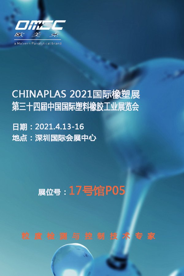 CHINAPLAS 2021国际橡塑展将于4月13日至16日在深圳国际会展中心举行。届时将汇聚超过3,600家中外展商共同参与。珠海欧美克仪器有限公司携激光粒度分析仪亮相,与您共塑精彩未来。