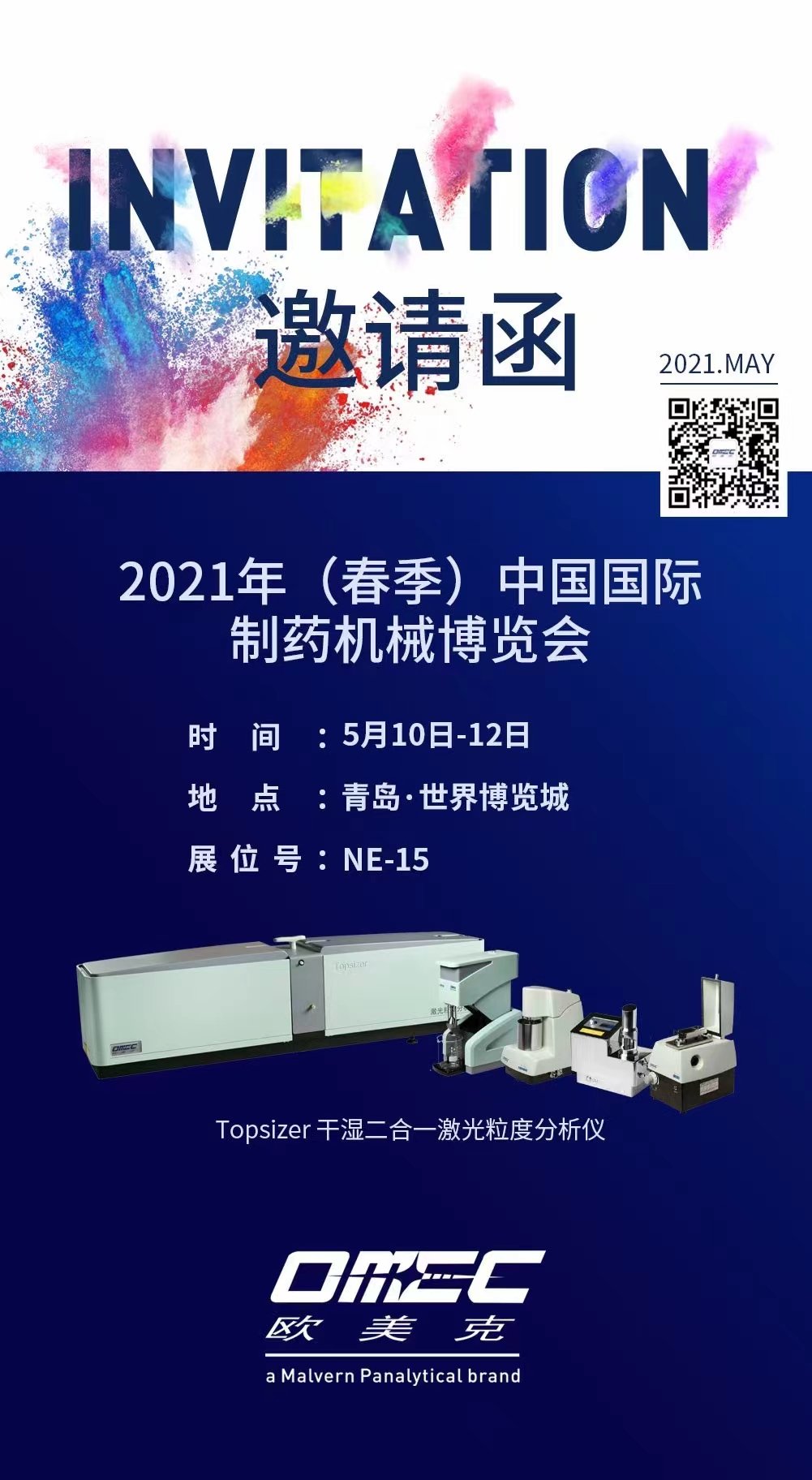 CIPM2021中国国际制药机械博览会,5月10-12日在山东 青岛世界博览城举行。您身边的粒度检测与控制技术专家--珠海欧美克仪器有限公司携TopSizer干湿二合一激光粒度分析仪亮相。