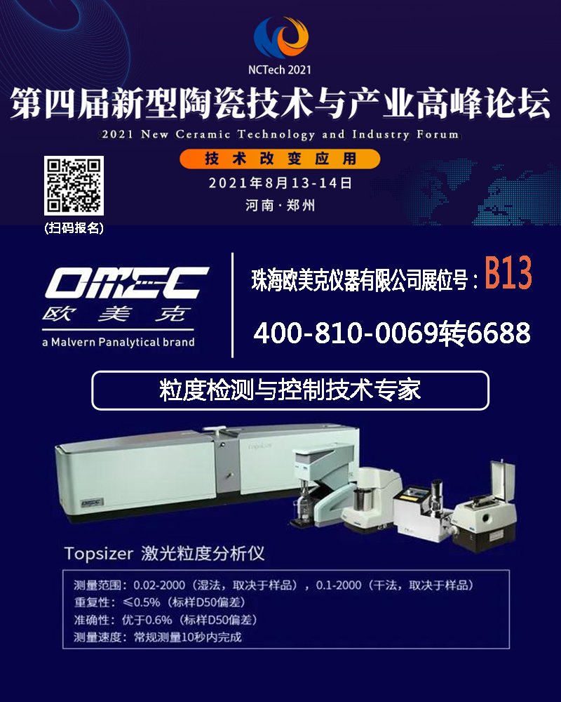 2021第四届新型陶瓷技术与产业高峰论坛,2021年8月13-14日在郑州·喆鹏酒店举办。珠海欧美克仪器有限公司作为展位赞助单位参与此次盛会。
