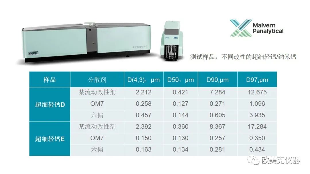 ▲ Topszier激光粒度分析仪检测纳米碳酸钙的不同方案的测试对比