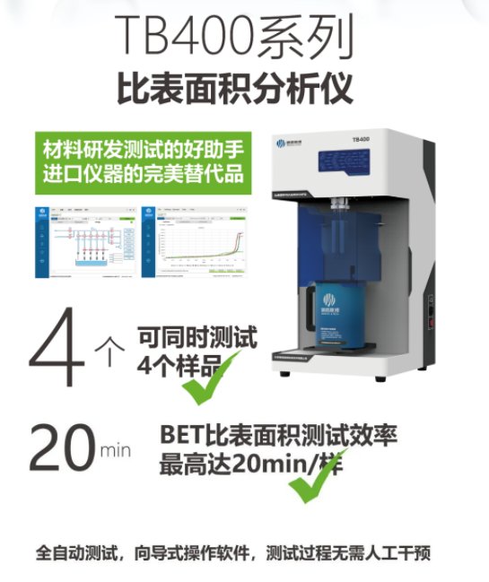 TB系列比表面积及孔径分析仪,此款产品是精微高博最新推出的表征微纳米粉体材料表面物性及孔结构的仪器。测试过程中多个样品共用同一杜瓦瓶同一气源进行测试分析,保证分析测试的准确性和重复性,真正实现多站间无差异化分析。独有的Vtech技术使得TB系列产品的测试效率更高,测试结果更重复、更稳定,更能满足大孔材料的测试需求。