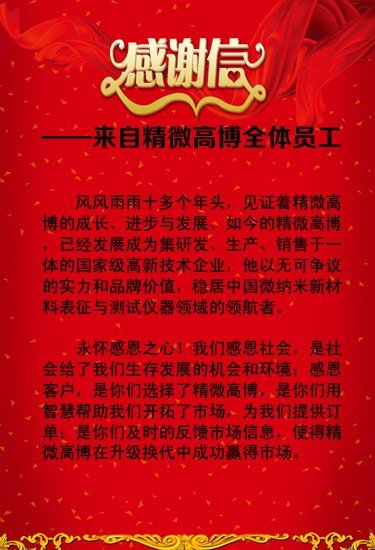 风风雨雨十多个年头,见证着精微高博的成长、进步与发展、如今的精微高博,已经发展成为集研发、生产、销售于一体的国家级高新技术企业,他以无可争议的实力和品牌价值,稳居中国微纳米新材料表征与测试仪器领域的领航者。