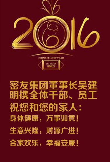 辞旧迎新,回首过去,2015年我们密友在您的信任与支持下使我们保持稳定发展。长期以来,我们携手并进,彼此间建立了良好的合作关系。我们密友的发展离不开您的支持和帮助,在此向您表示诚挚的感激与谢意。