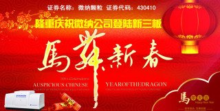 值此春节来临之际,微纳颗粒怀着感恩的心情,向您致以亲切的问候和诚挚的谢意。感谢您在过去的一年里对“微纳颗粒”一如既往的支持和帮助,在即将过去的一年,因为有您的陪伴和支持,微纳颗粒取得长足的发展,获得了业界的口碑和认可,并成功于2014年元月24日登陆新三板(证券名称为:“微纳颗粒”,证券代码为:430410),这是对我们微纳人多年来努力耕耘的肯定,更是对“微纳颗粒”品牌的认同和赞誉。