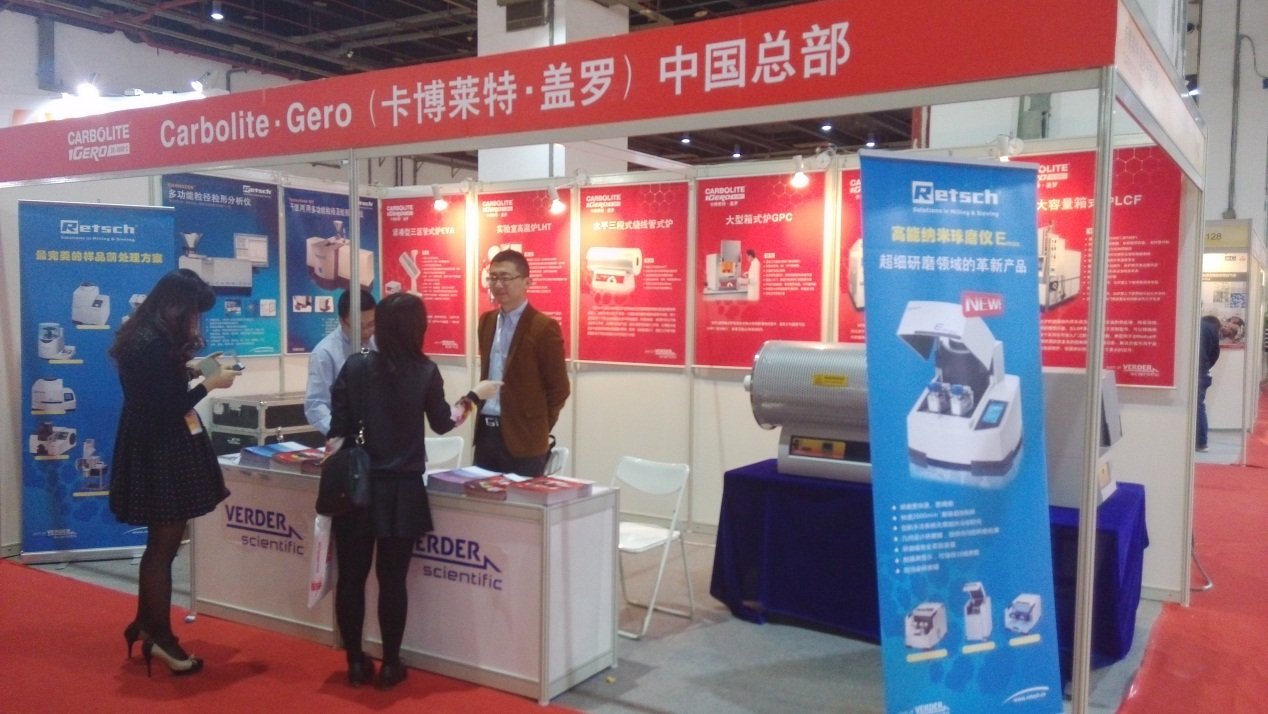 展位现场更展示在粉末冶金领域常用的水平单段管式炉GHA和高温箱式炉RHF。精湛的制作工艺和外形吸引众多参观者的注意,尤其是各类材料企业和研究院,因为在材料烧结和金属热处理中,温度均匀性是很多专家和老师最关注的要素。GHA水平单段管式炉炉体绝缘层内嵌入加热元件。这种设计使得一台炉子通过工作管适配器可以使用各种直径的工作管,多种管径和材料可供选择。隔热保温塞和防辐射屏蔽塞防止热量损失,提高温度均匀性。Carbolite使用标准的PID301控制器,单段程序控制,数字显示和处理计时器,保证精确的温度设定和控制。RHF系列高温箱式炉采用硅碳棒加热元件使用寿命长,能够承受间歇操作产生的应力。有4种炉腔尺寸,每种都有3种不同最高工作温度可选(1400℃,1500℃和1600℃)。耐磨耐火材料制成的炉门和碳化硅炉膛结构和高品质的加热元件保证加热速率和长久的工作寿命。