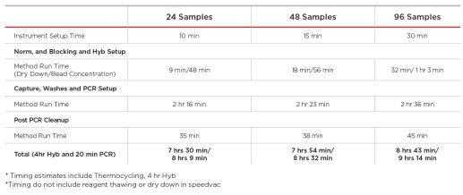 Figure 5. 完成 24/48/96个样本的自动化IDT xGen®杂交捕获测序文库制备预估耗时。