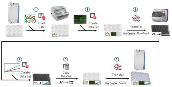 细胞株开发是众多具有重大数据挑战的工作流程之一。与任何筛选过程一样,样本通量带来了数据量的挑战。当使用多种分析工具以不同格式生成不同类型的数据时,这就变得更加具有挑战性。这不仅需要在不同的孔板和孔之间移动数据,而且整个过程可能会延长数月。在整个过程中,必须对数据进行追踪,以确保进入生产的任何细胞株都有必要的历史数据(例如单克隆性的证明),并且为了报告需要,所有的数据都可以被方便地访问。在这里,我们将描述在Biomek i7工作站(图1)上自动化细胞株开发如何克服与此工作流程相关的许多数据挑战。