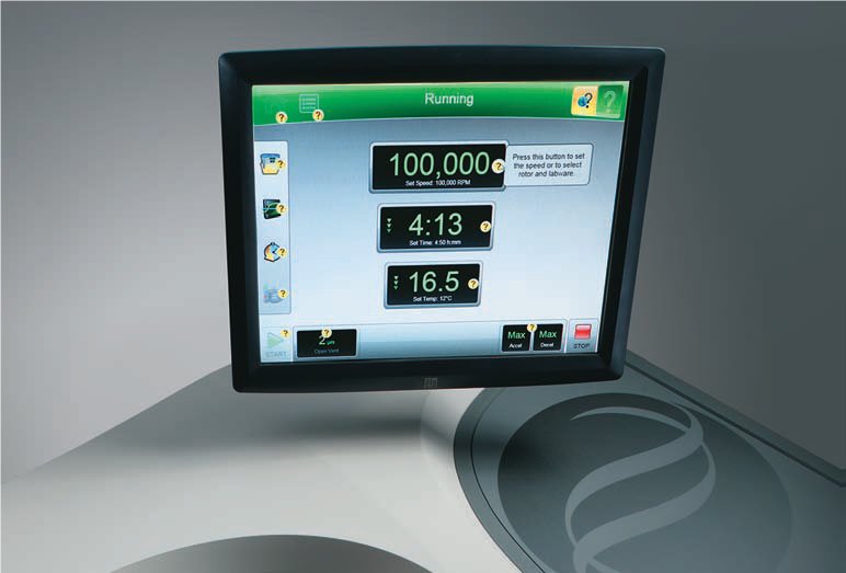 左图:贝克曼Optima XPN-100、Avanti JXN-26 智能型超速和高效离心机。右图:超大智能显示屏允许用户轻松地访问运行和系统日志,以简化用户操作体验。