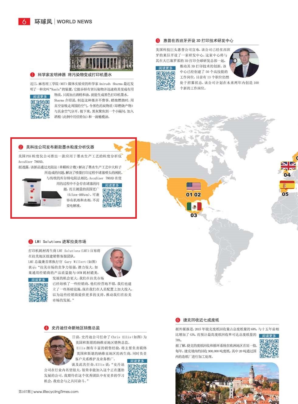 由我公司自主研发的基于光阻法单颗粒光学传感技术SPOS的粒度仪-AccuSizer 780AD,被《再生时代》杂志12月刊-环球风版块报道。《再生时代》是全球最大的打印耗材展-珠海打印耗材展的官方期刊。