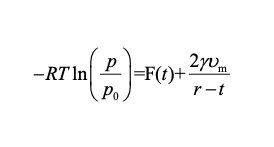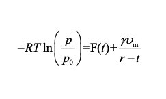 这样,我们就将 F(t) 与相对压力(p/p0)和吸附层厚度 t 联系了起来,从而可以绘制 t-plot 曲线。对于介孔中存在弯曲液面的情况,吸附剂孔道表面稳定的吸附层化学势与宏观液化的吸附质化学势的差值- RTln(p/p0)可以等于: