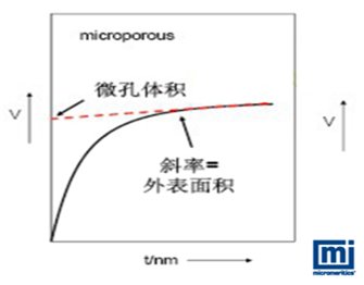 图3. 微孔t-plot图(如多微孔炭黑)