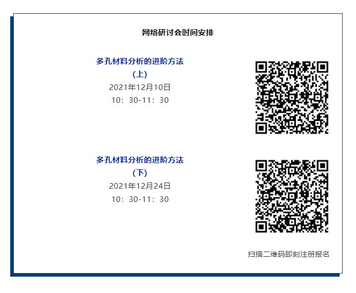 物理吸附相关问题是麦克仪器客户很常见的问题之一。一般来说,材料可以分为微孔、介孔、大孔材料,很多物质并非单一孔类型,有些材料包含多种孔径。一般对于小于300 nm 的孔,我们会采用气体物理吸附方法,去分析孔的表面积和孔径分布。而其中的分析方法有多种,这些方法包括BET方法、BJH方法、t-plot方法、HK方法以及DFT方法等。此次研讨会我们将对上述方法的应用场景进行分享,帮助大家更好地掌握应用方式。