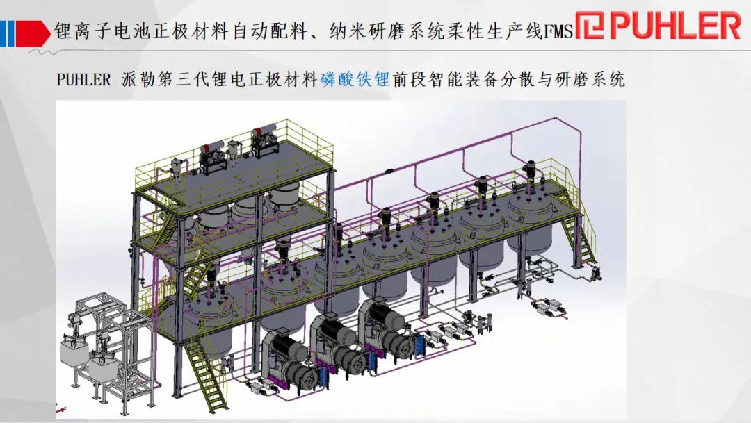 ① 派勒第三代锂电正极材料磷酸铁锂前段智能装备分散与研磨系统