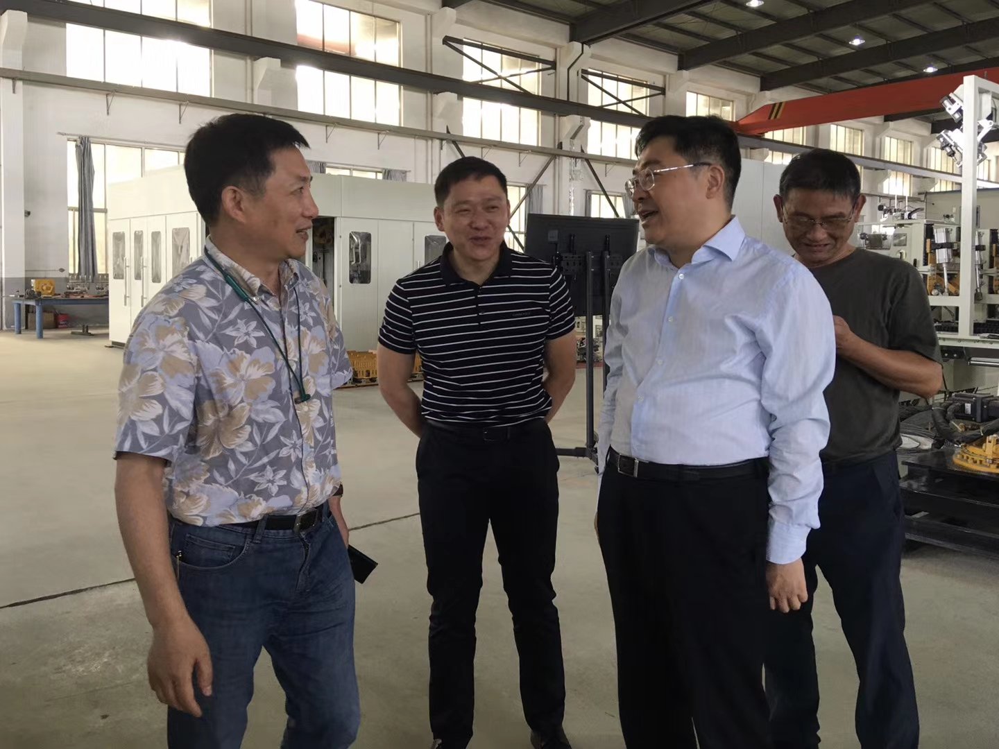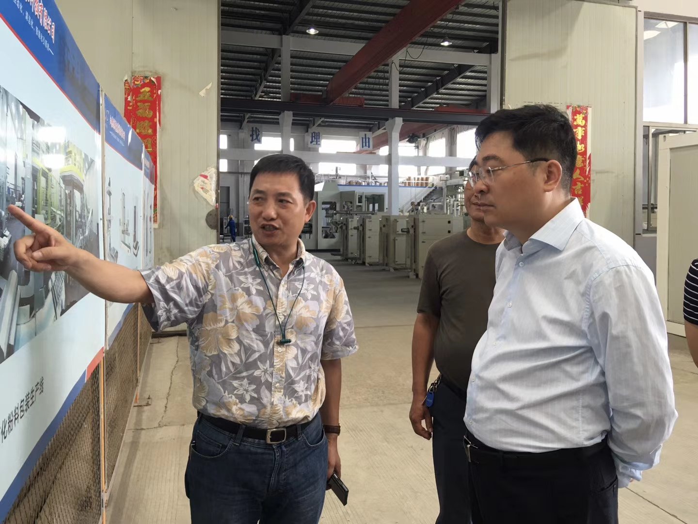 6月29日,高邮镇党委书记史美山莅临江苏创新包装科技有限公司考察,公司董事长方先其汇报了创新包装公司发展情况。