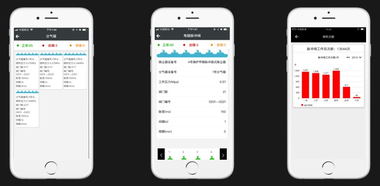 ①掌上监控:随时随地查看除尘器、气包、脉冲阀的运行状态