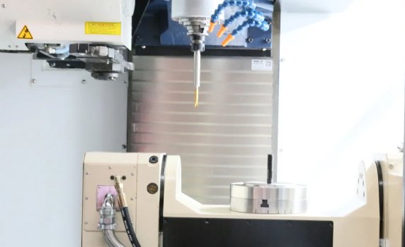 “大大小小几十个孔位,以及密集分布的精密纹路,传统的多工序加工方式要靠人工去一个个定位,误差是难免的。五轴加工中心是智能一体化加工,可以不用改变工件在机床上的位置进行不同侧面加工,形位公差完全可以忽略不计。