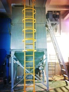 江苏隆力奇工厂一洗衣粉三楼车间因原有布袋除尘器的使用效果不明显,需重新购置一台布袋除尘器,根据工况及场地问题,故选用褶皱布袋除尘器,以下为现场图片