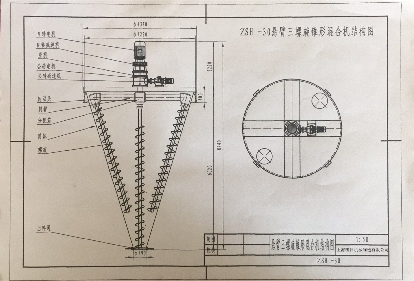 上海凯日机械推出一款新型三螺旋锥形混合机,可按用户要求定制(悬臂式)三螺旋设计、性能更加突出,解决了支承式三螺旋易断、易发热、支点易磨损;解决了其它机中间搅拌不到有盲区与底部死角等缺陷;事实胜于雄辩,实践证明容积从2立方米不锈钢以上机,由先进的创新三条螺旋替代 双(单)条螺旋,混合速度更快、搅拌时间更短、 无死角、节能、效率更高、均匀度即精度更高,久经耐用,特别对特轻、特细、密度大等物料,更加适用。