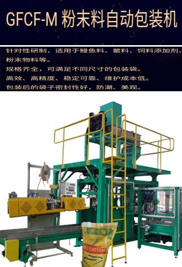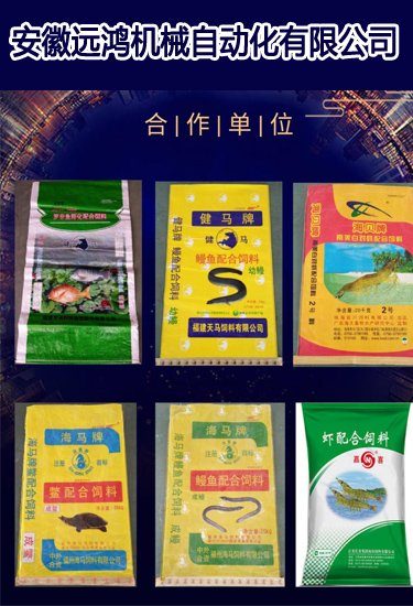 远鸿全自动饲料包装码垛生产线实现全自动计量、上袋、填充物料、缝包、缝标签、倒包重量复检、自动上托盘、机器人码垛。