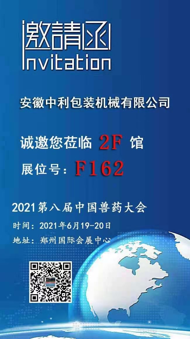 由中国兽医药品监察所和中国兽药协会联合主办的第八届中国兽药大会定于2021年6月19-20日在河南郑州国际会展中心召开。安徽中利包装机械有限公司应邀参加。