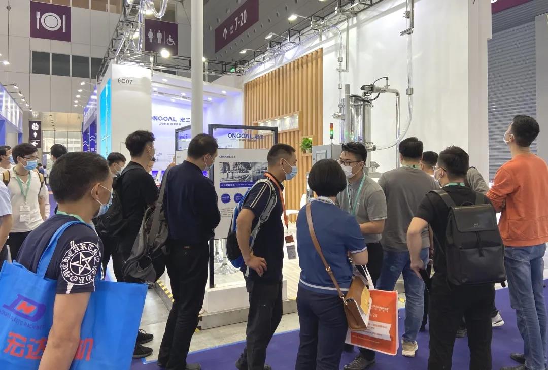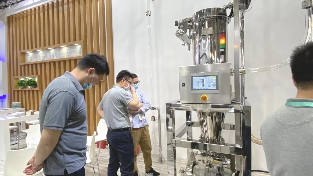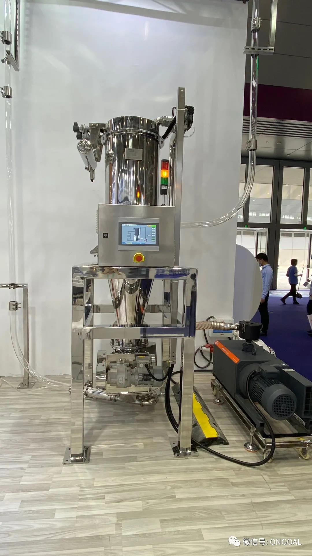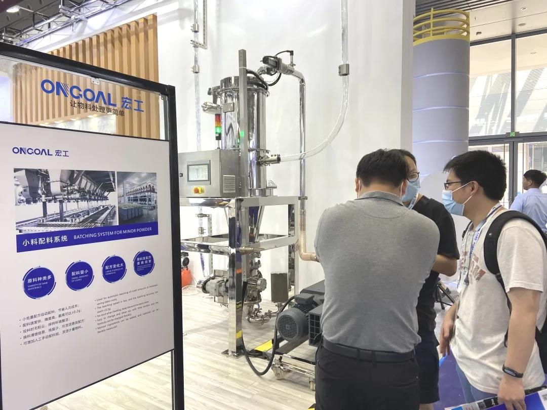 在此次展会上,宏工展出了一套自动循环的物料气力输送系统,采用负压真空的形式,在现场直观地展示了物料气力输送的形态。
